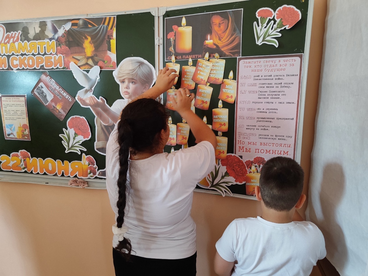 Анна Сергеевна Воронина провела для ребят акцию ко "Дню Памяти и Скорби", на которой они смастерили свечи.