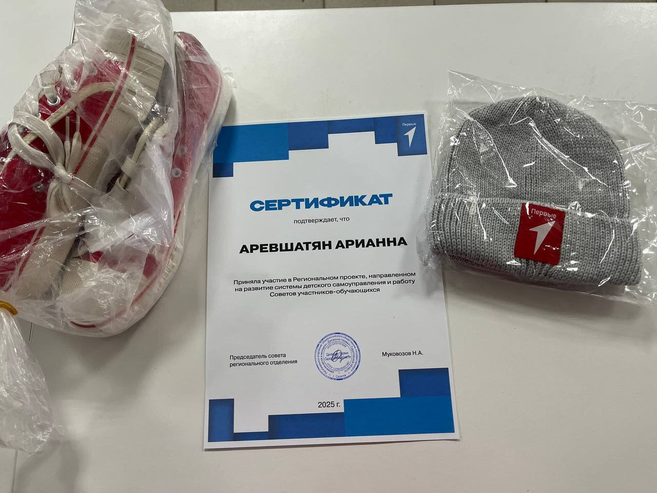 Особенно приятно было получить символические подарки от Движения Первых: стильные кеды, шапку и цепочку! Эти вещи не только красивы, но и напоминают о нашей общей цели — делать мир лучше!
